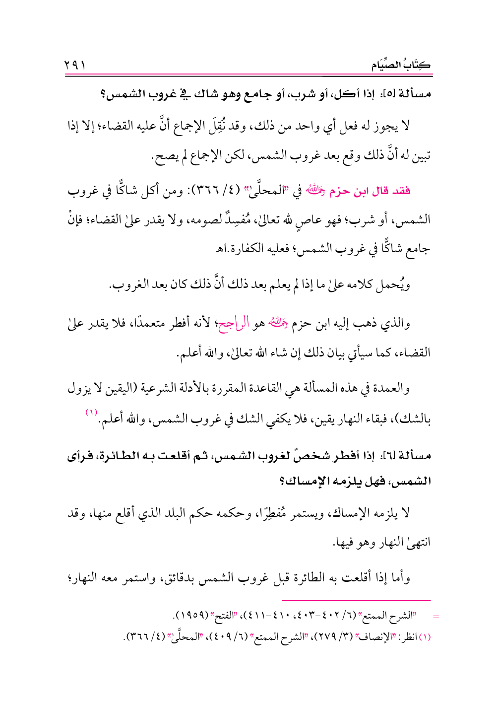 (¬١) انظر: «الإنصاف» (٣/ ٢٧٩)، «الشرح الممتع» (٦/ ٤٠٩)، «المحلَّى» (٤/ ٣٦٦).