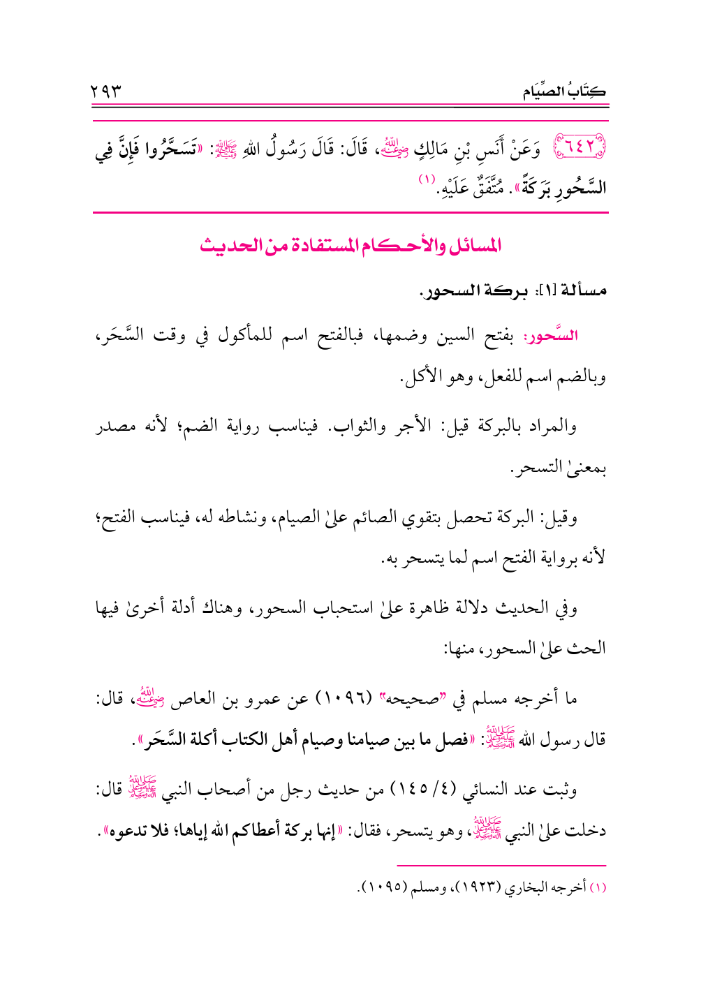 ٦٤٢ - وَعَنْ أَنَسِ بْنِ مَالِكٍ -رضي الله عنه-، قَالَ: قَالَ رَسُولُ اللهِ - صلى الله عليه وسلم -: «تَسَحَّرُوا فَإِنَّ فِي السَّحُورِ بَرَكَةً». مُتَّفَقٌ عَلَيْهِ. (¬١)
