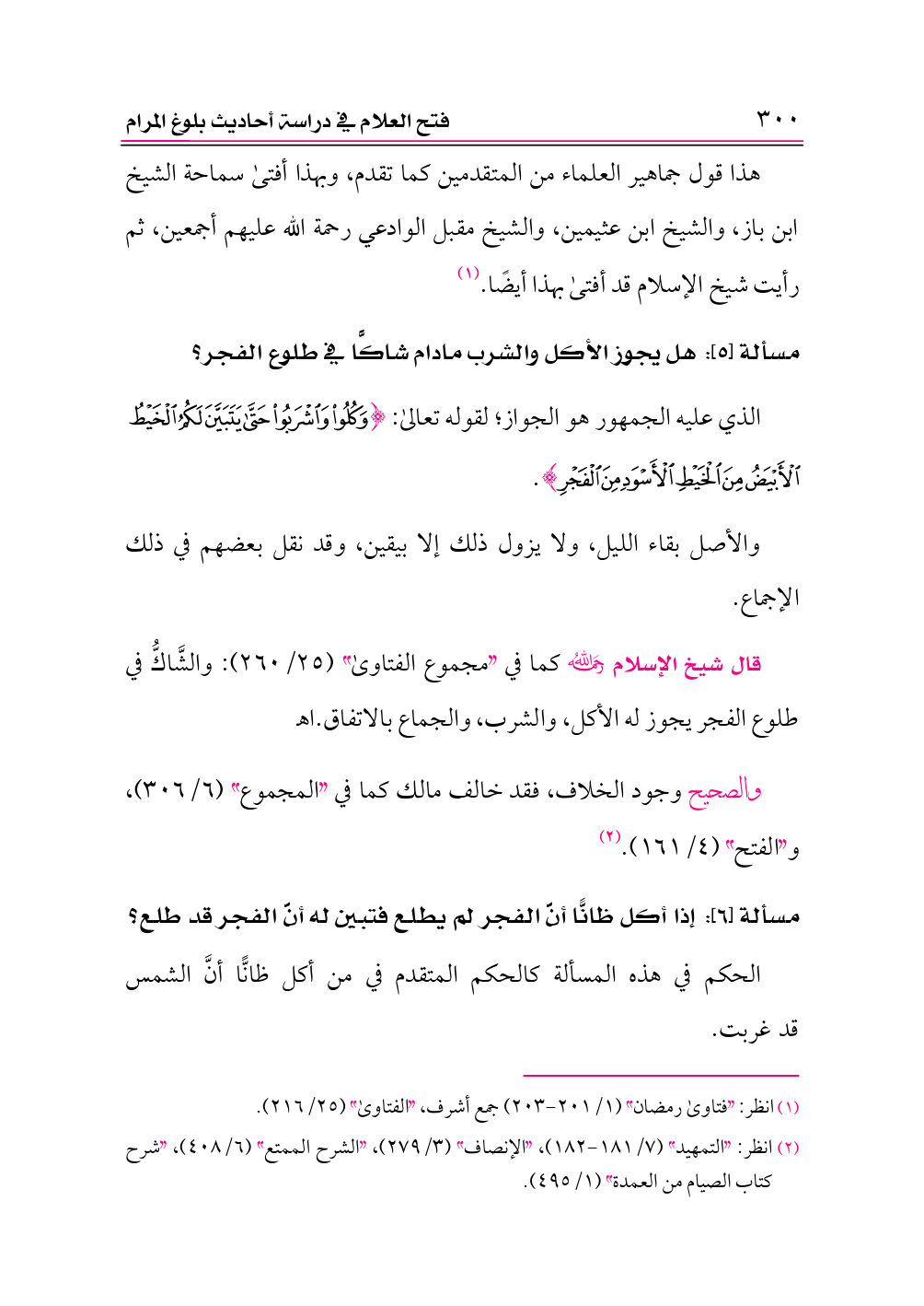 (¬٢) انظر: «التمهيد» (٧/ ١٨١ - ١٨٢)، «الإنصاف» (٣/ ٢٧٩)، «الشرح الممتع» (٦/ ٤٠٨)، «شرح كتاب الصيام من العمدة» (١/ ٤٩٥).