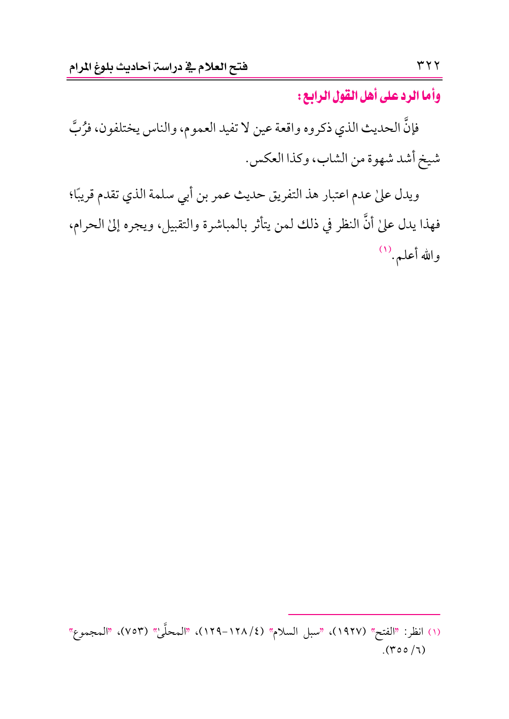 كتاب فتح العلام في دراسة أحاديث بلوغ المرام ط 4 (اسم الجزء: 4)