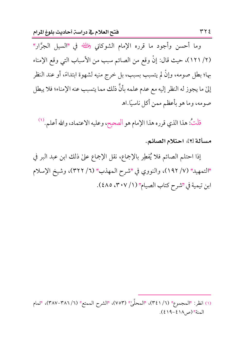 (¬١) انظر: «المجموع» (٦/ ٣٤١)، «المحلَّى» (٧٥٣)، «الشرح الممتع» (٦/ ٣٨٦ - ٣٨٧)، «تمام المنة» (ص ٤١٨ - ٤١٩).