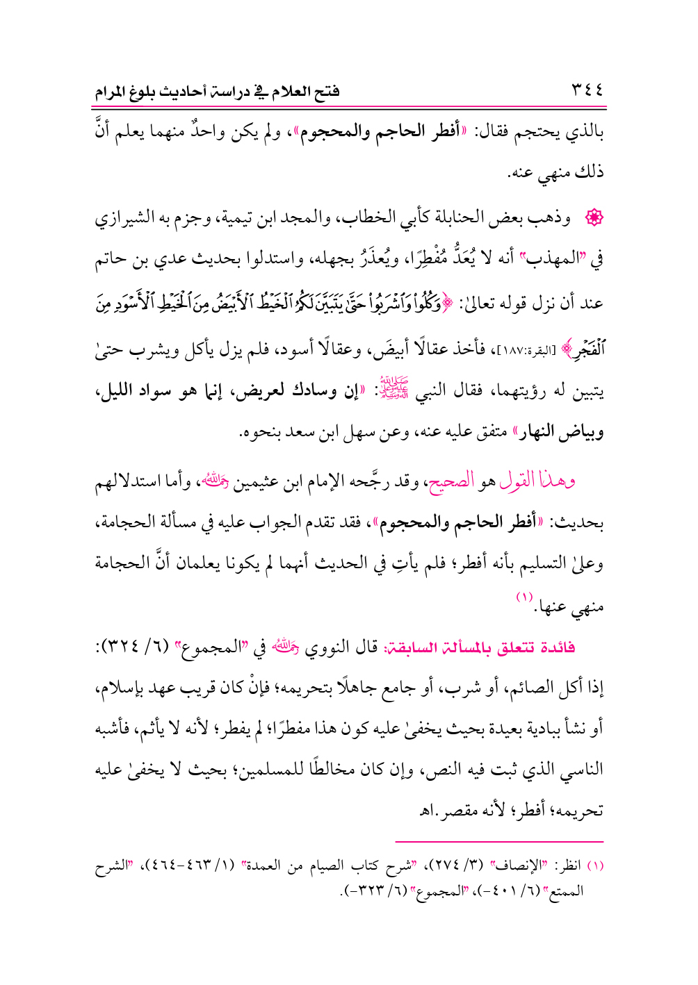 (¬١) انظر: «الإنصاف» (٣/ ٢٧٤)، «شرح كتاب الصيام من العمدة» (١/ ٤٦٣ - ٤٦٤)، «الشرح الممتع» (٦/ ٤٠١ - )، «المجموع» (٦/ ٣٢٣ - ).