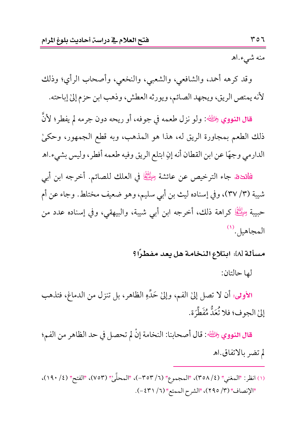 مسألة [٨]: ابتلاع النخامة هل يعد مفطرًا؟