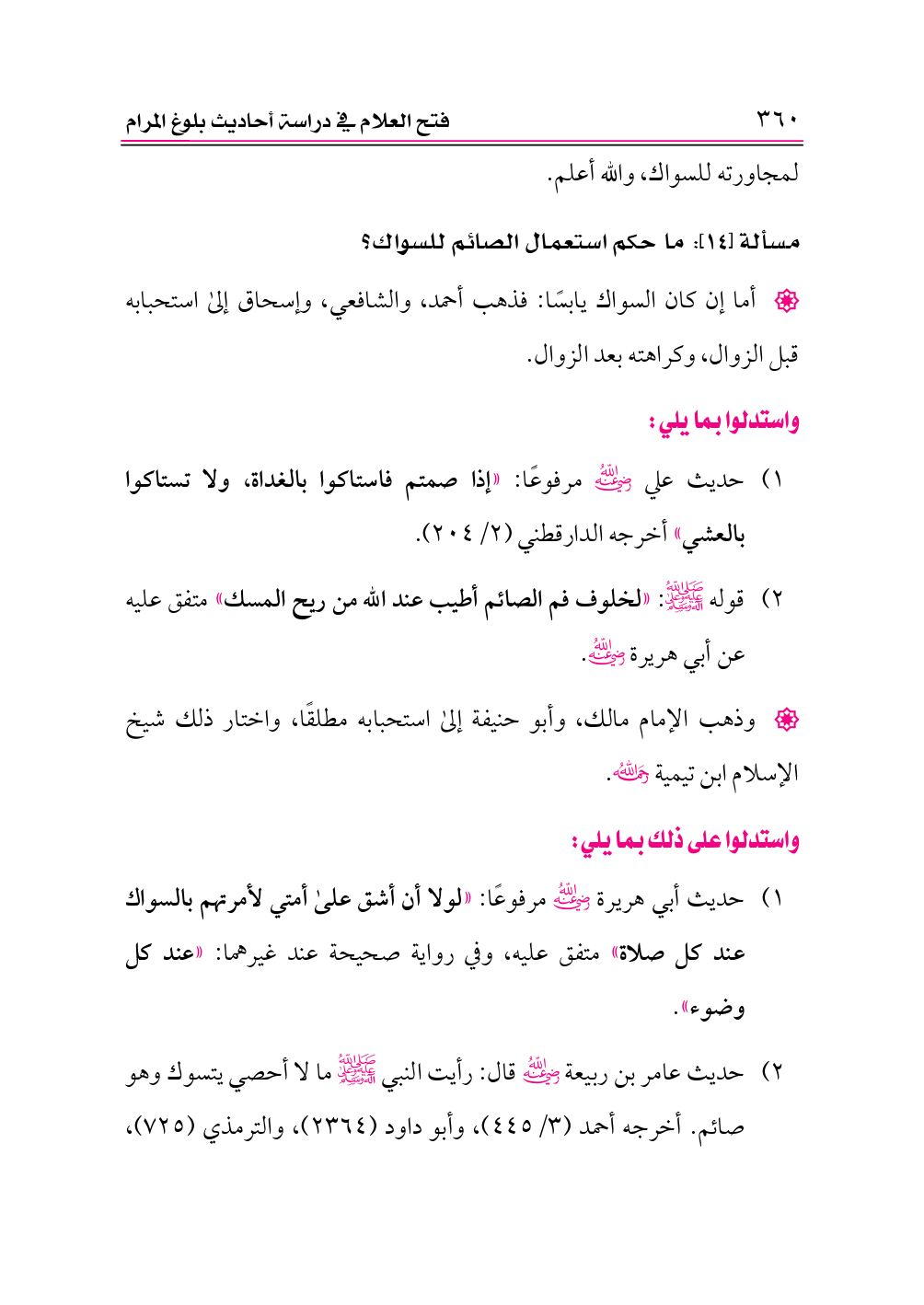 مسألة [١٤]: ما حكم استعمال الصائم للسواك؟