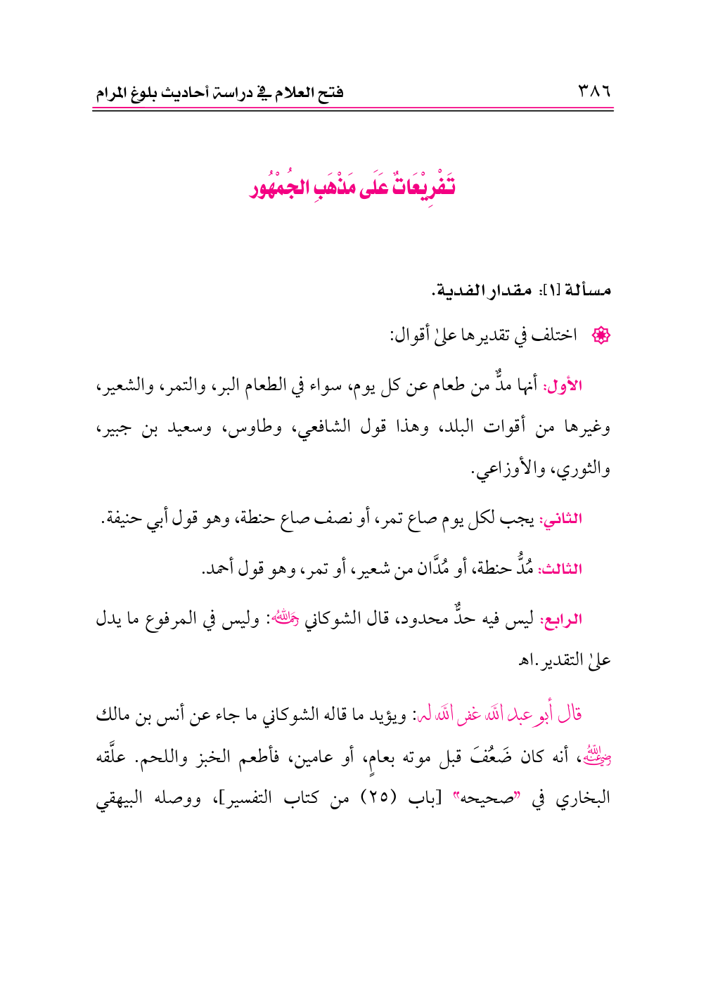 تَفْرِيْعَاتٌ عَلَى مَذْهَبِ الجُمْهُور