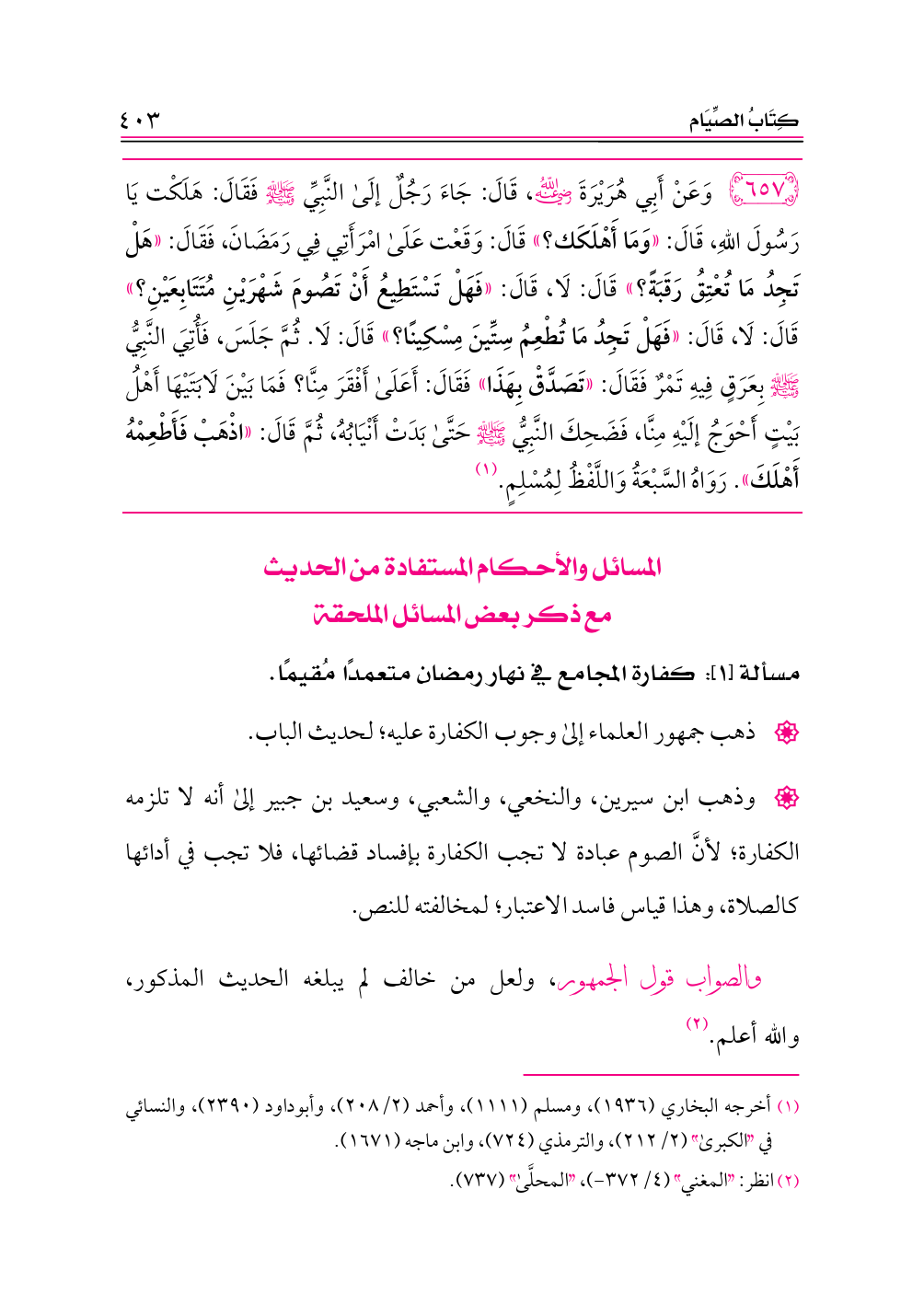(¬١) أخرجه البخاري (١٩٣٦)، ومسلم (١١١١)، وأحمد (٢/ ٢٠٨)، وأبوداود (٢٣٩٠)، والنسائي في «الكبرى» (٢/ ٢١٢)، والترمذي (٧٢٤)، وابن ماجه (١٦٧١).