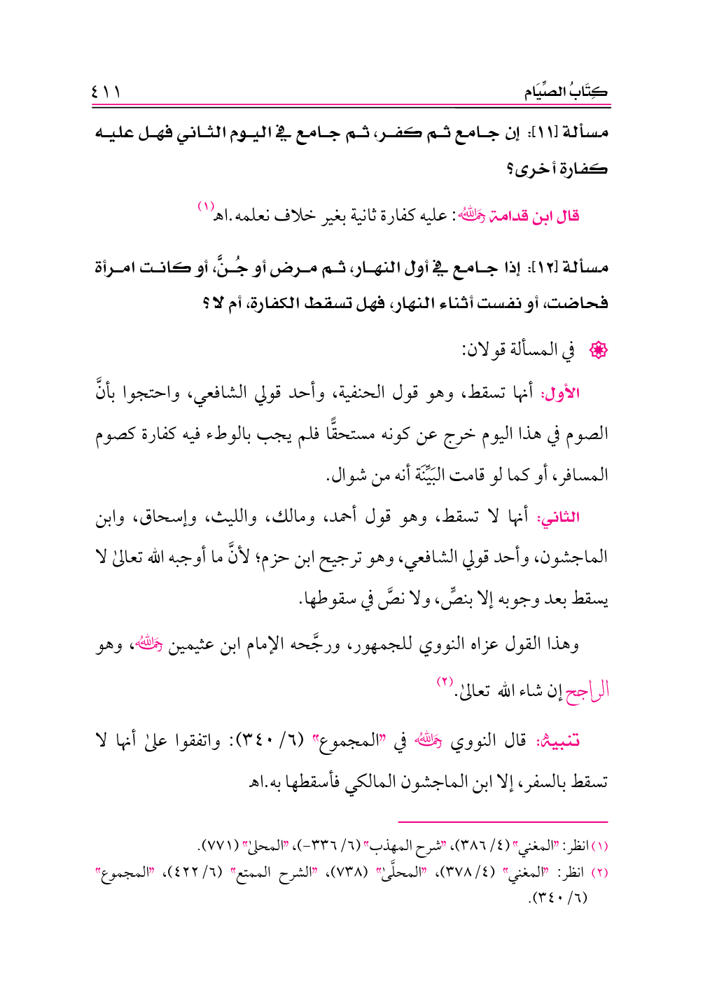 (¬٢) انظر: «المغني» (٤/ ٣٧٨)، «المحلَّى» (٧٣٨)، «الشرح الممتع» (٦/ ٤٢٢)، «المجموع» (٦/ ٣٤٠).