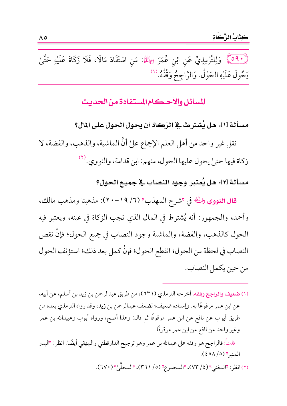 مسألة [١]: هل يُشترط في الزكاة أن يحول الحول على المال؟