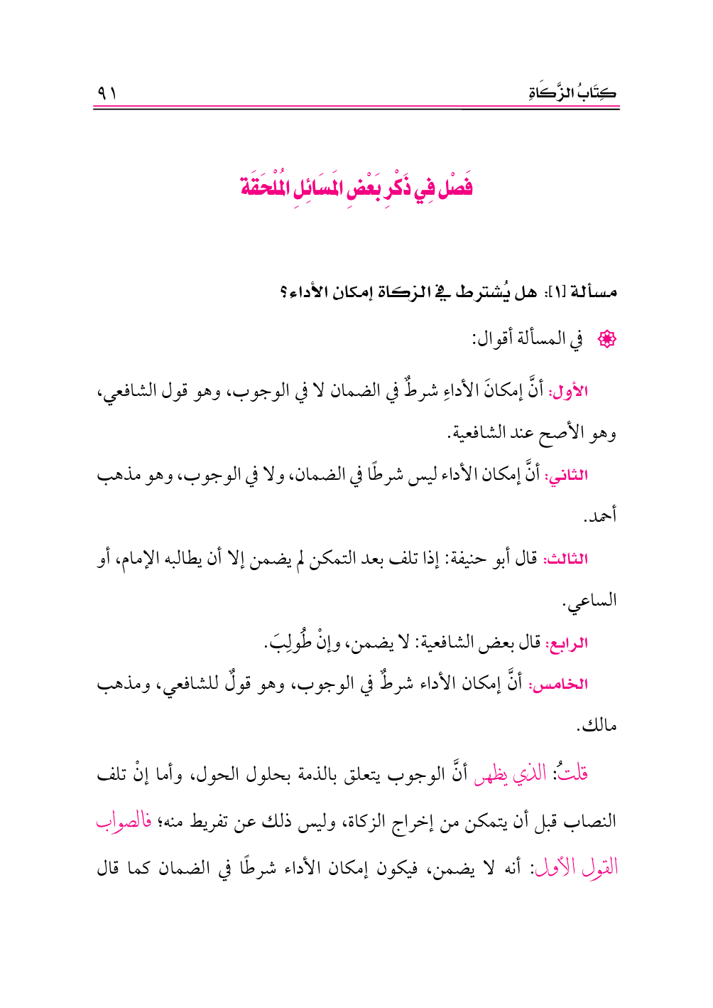مسألة [١]: هل يُشترط في الزكاة إمكان الأداء؟