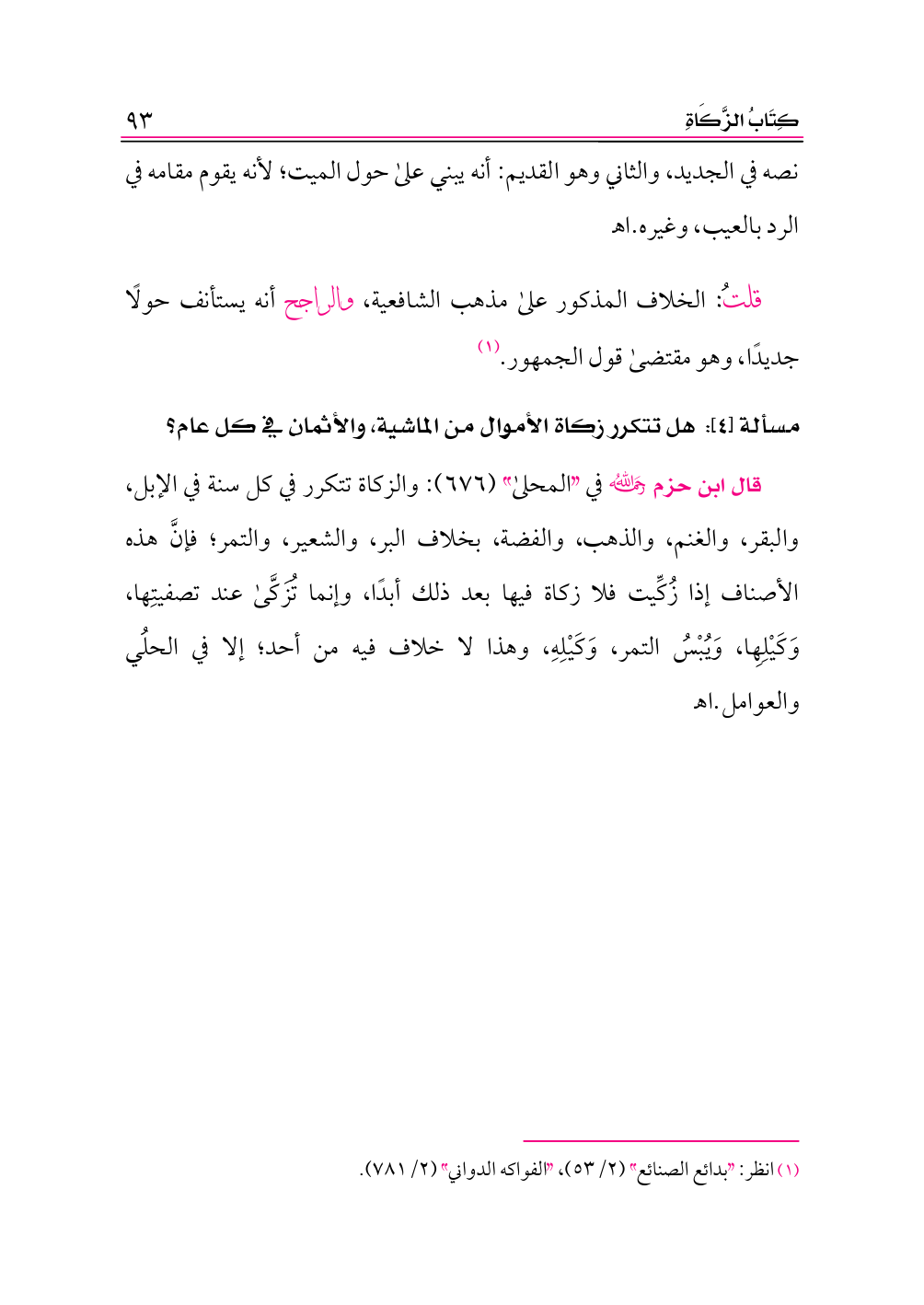 (¬١) انظر: «بدائع الصنائع» (٢/ ٥٣)، «الفواكه الدواني» (٢/ ٧٨١).