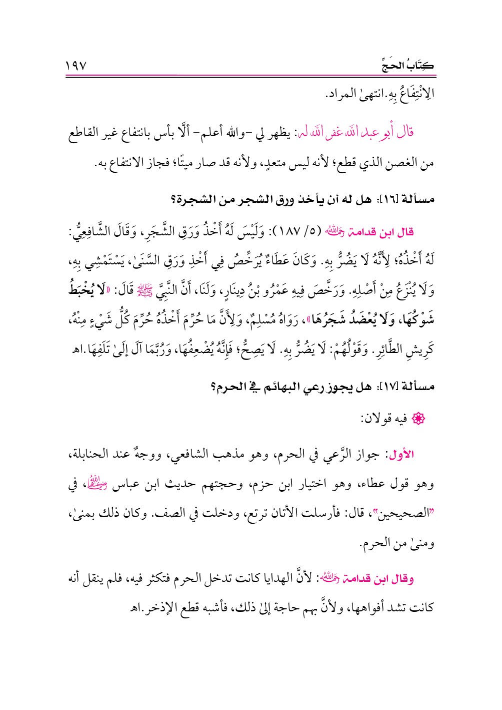 مسألة [١٧]: هل يجوز رعي البهائم في الحرم؟