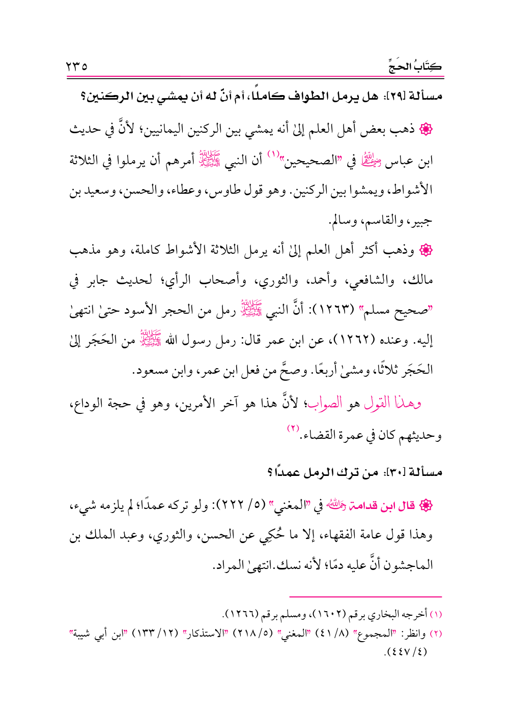 مسألة [٣٠]: من ترك الرمل عمدًا؟