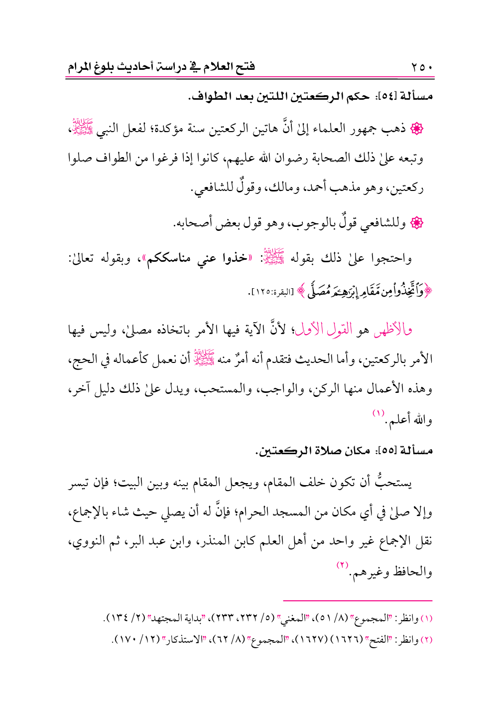 واحتجوا على ذلك بقوله -صلى الله عليه وعلى آله وسلم-: «خذوا عني مناسككم»، وبقوله تعالى: {وَاتَّخِذُوا مِنْ مَقَامِ إِبْرَاهِيمَ مُصَلًّى} [البقرة:١٢٥].