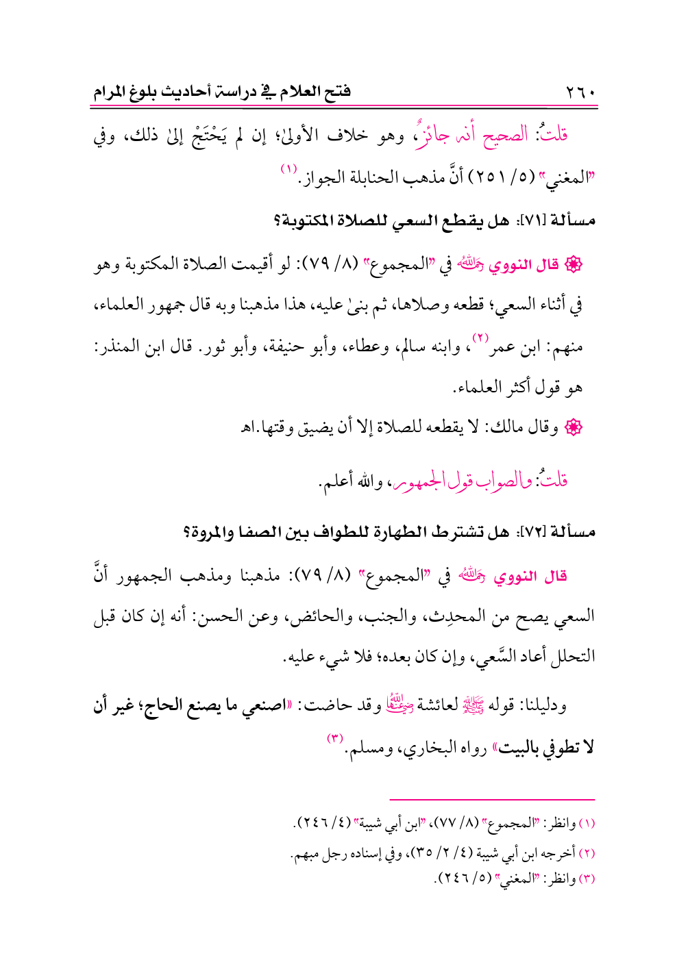 مسألة [٧١]: هل يقطع السعي للصلاة المكتوبة؟