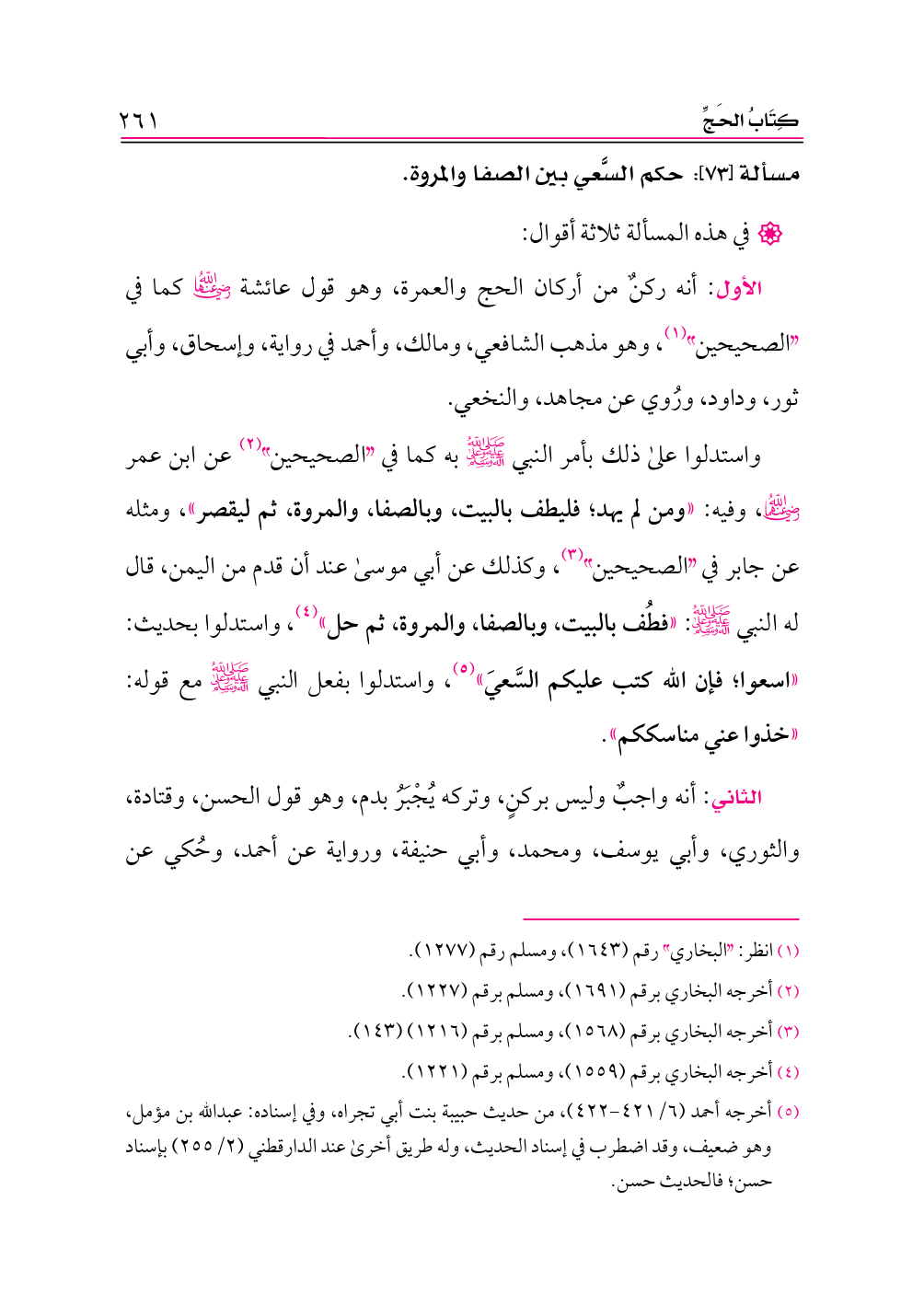 مسألة [٧٣]: حكم السَّعي بين الصفا والمروة.