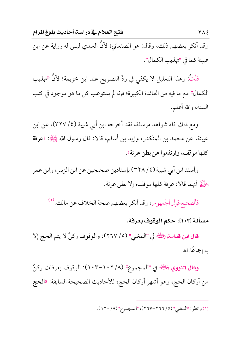 مسألة [١٠٣]: حكم الوقوف بعرفة.
