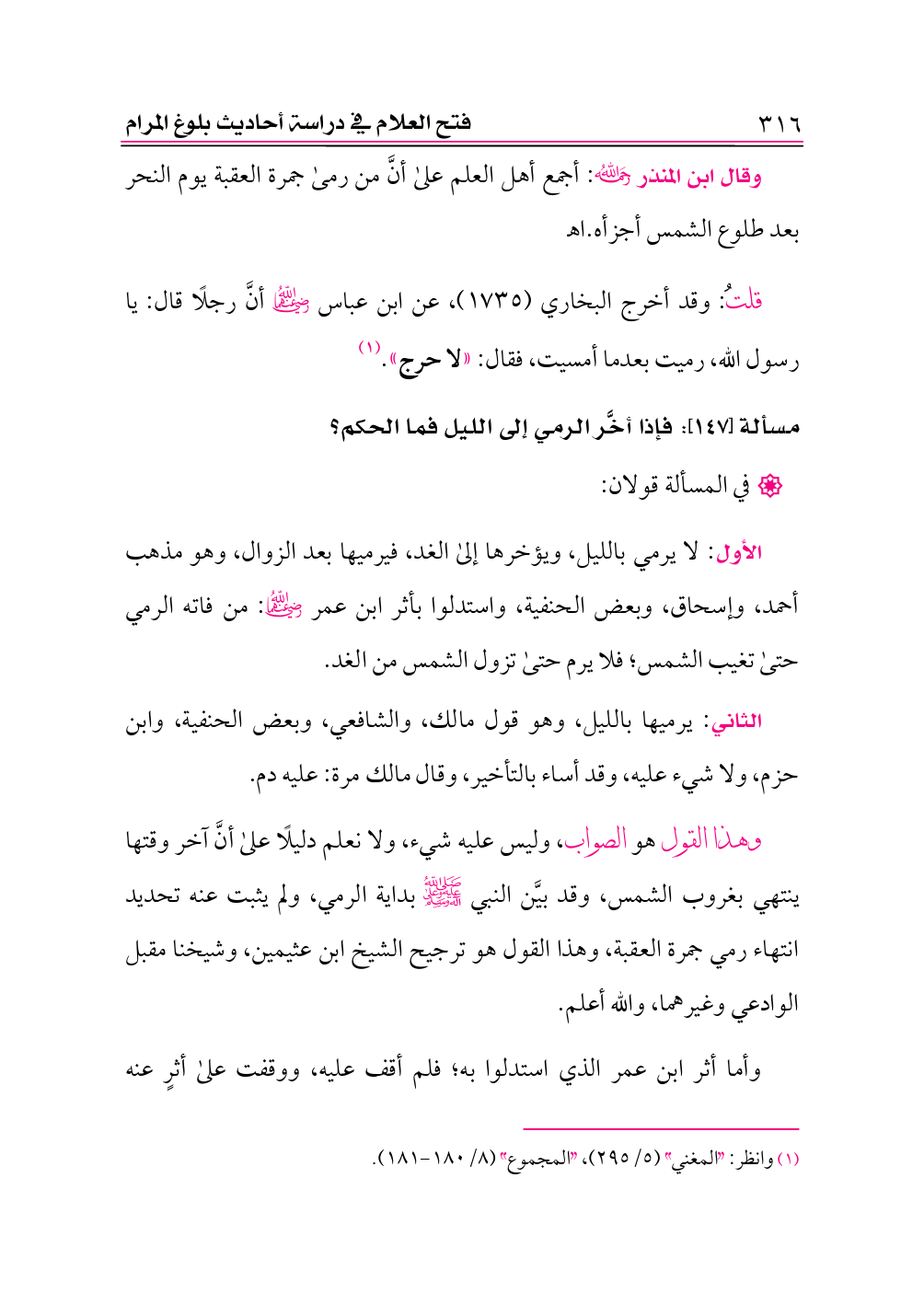 (¬١) وانظر: «المغني» (٥/ ٢٩٥)، «المجموع» (٨/ ١٨٠ - ١٨١).