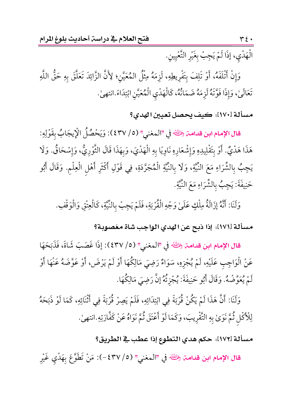 قال الإمام ابن قدامة -رحمه الله- في «المغني» (٥/ ٤٣٧ - ): مَنْ تَطَوَّعَ بِهَدْيِ غَيْرِ