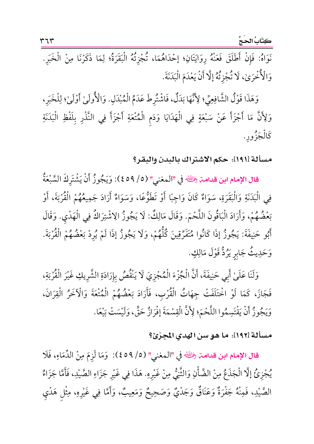 مسألة [١٩١]: حكم الاشتراك بالبدن والبقر؟