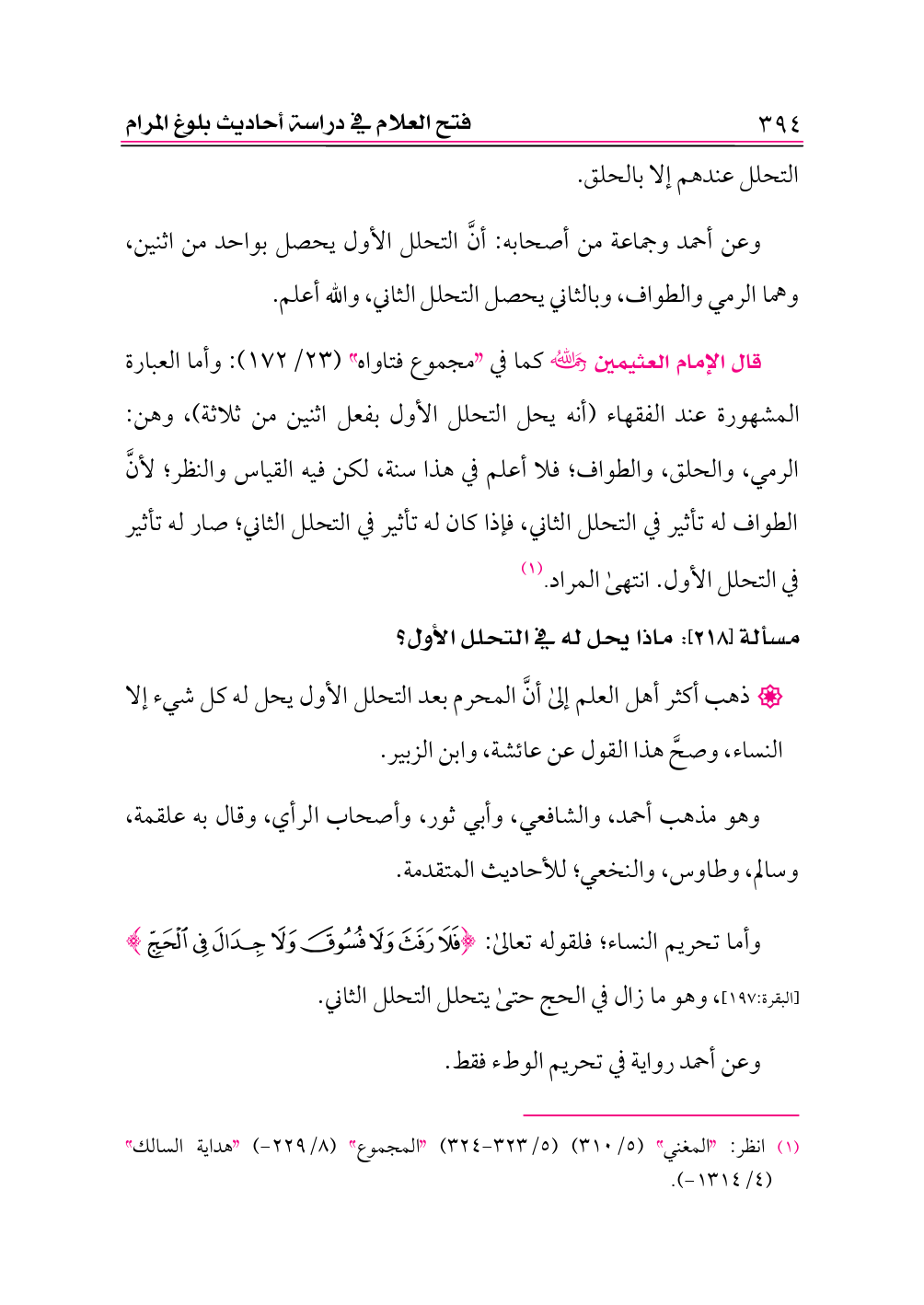 (¬١) انظر: «المغني» (٥/ ٣١٠) (٥/ ٣٢٣ - ٣٢٤) «المجموع» (٨/ ٢٢٩ - ) «هداية السالك» (٤/ ١٣١٤ - ).