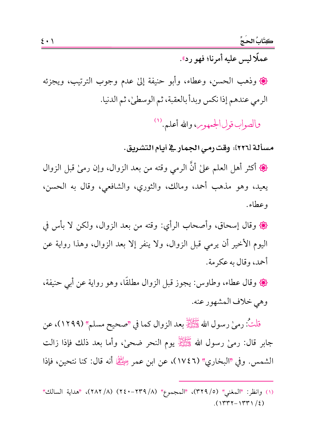 (¬١) وانظر: «المغني» (٥/ ٣٢٩)، «المجموع» (٨/ ٢٣٩ - ٢٤٠) (٨/ ٢٨٢)، «هداية السالك» (٤/ ١٣٣١ - ١٣٣٢).