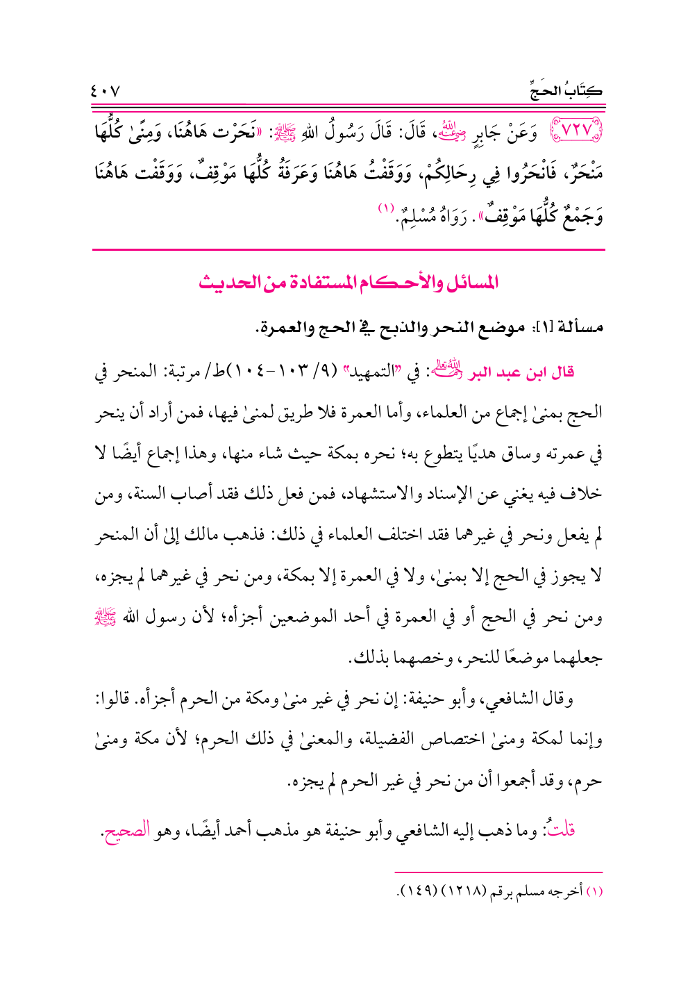 (¬١) أخرجه مسلم برقم (١٢١٨) (١٤٩).