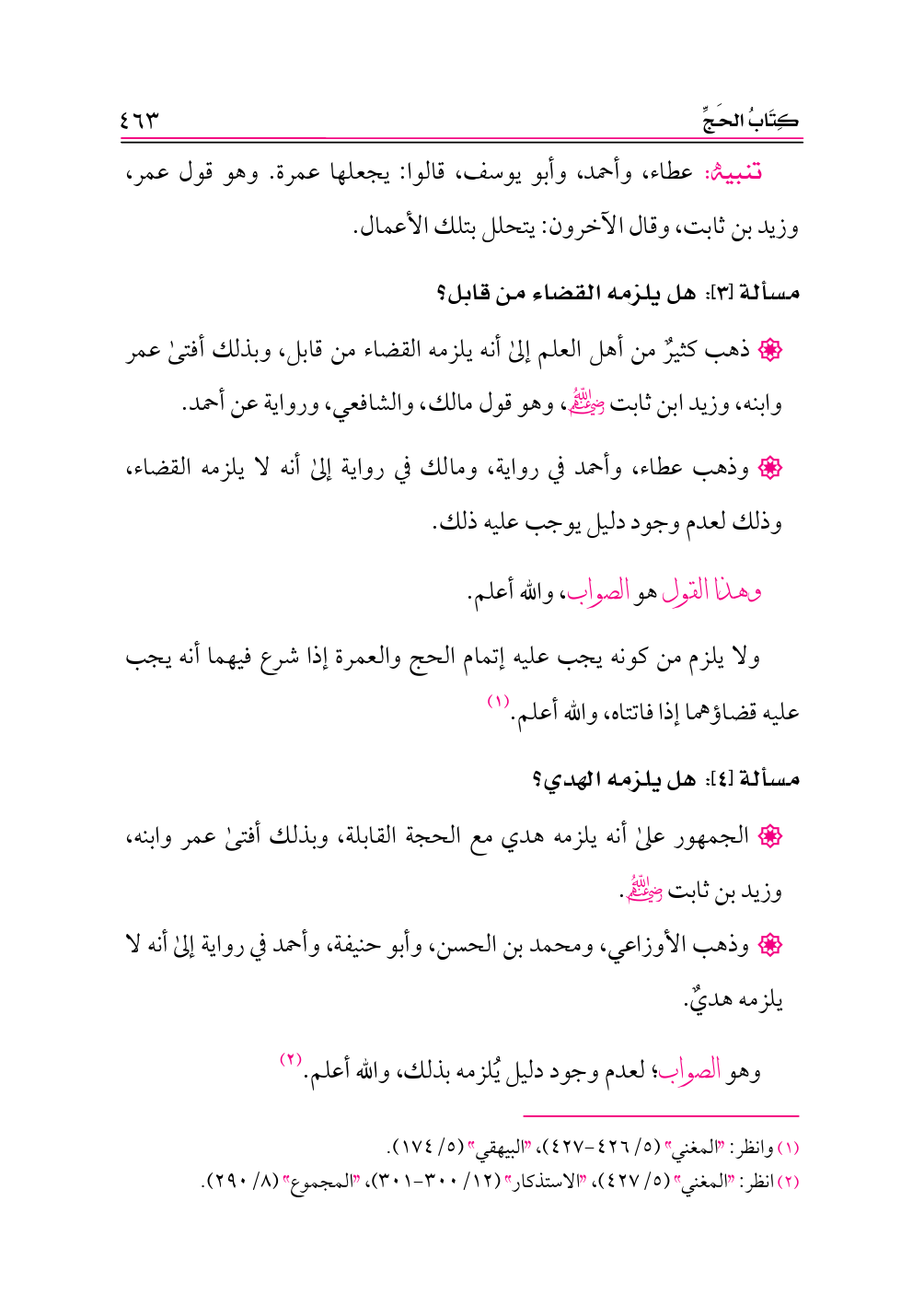 (¬١) وانظر: «المغني» (٥/ ٤٢٦ - ٤٢٧)، «البيهقي» (٥/ ١٧٤).