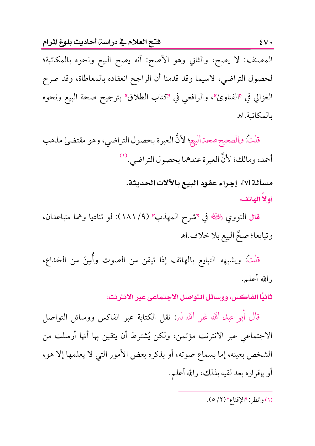 مسألة [٧]: إجراء عقود البيع بالآلات الحديثة.