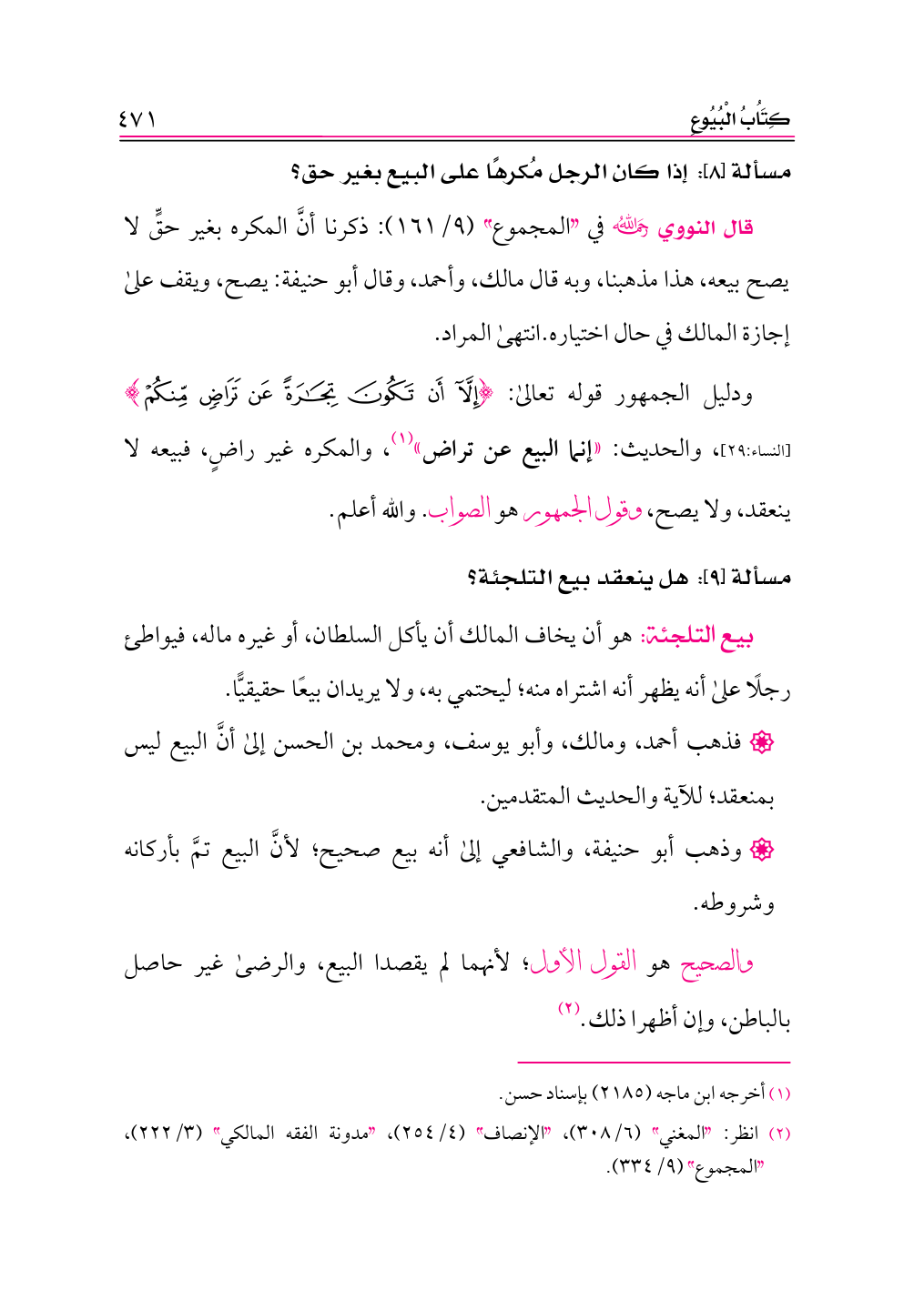 مسألة [٨]: إذا كان الرجل مُكرهًا على البيع بغير حق؟