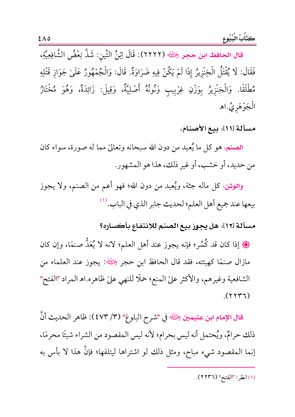 مسألة [١٢]: هل يجوز بيع الصنم للانتفاع بأكساره؟