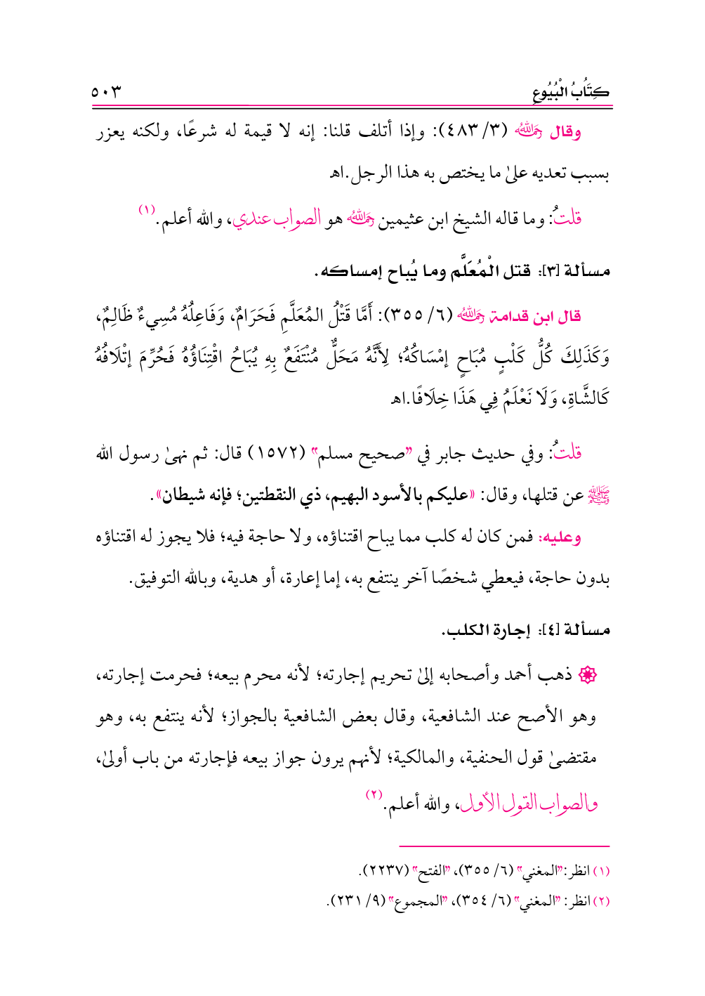 مسألة [٣]: قتل الْمُعَلَّم وما يُباح إمساكه.