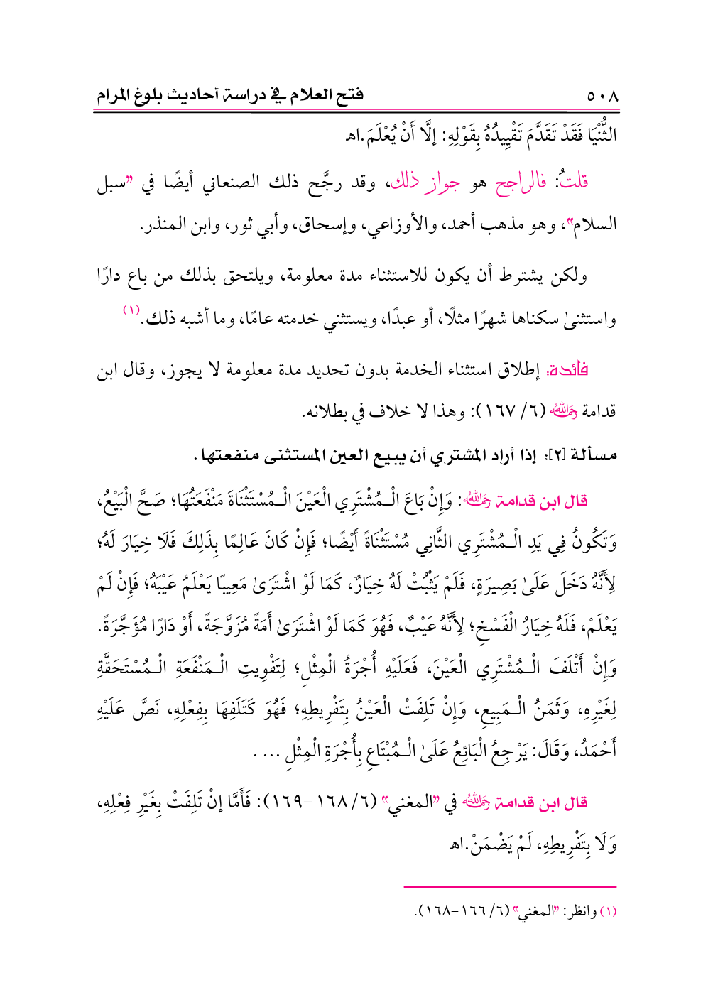 ولكن يشترط أن يكون للاستثناء مدة معلومة، ويلتحق بذلك من باع دارًا واستثنى سكناها شهرًا مثلًا، أو عبدًا، ويستثني خدمته عامًا، وما أشبه ذلك. (¬١)