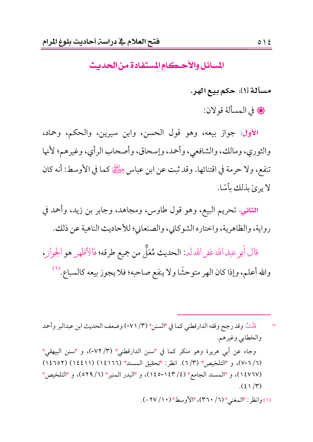 كتاب فتح العلام في دراسة أحاديث بلوغ المرام ط 4 (اسم الجزء: 5)