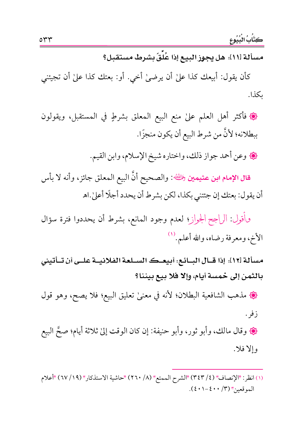 (¬١) انظر: «الإنصاف» (٤/ ٣٤٣) «الشرح الممتع» (٨/ ٢٦٠) «حاشية الاستذكار» (١٩/ ٦٧) «أعلام الموقعين» (٣/ ٤٠٠ - ٤٠١).