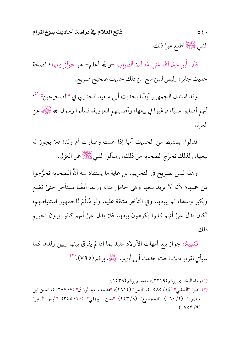 تنبيه: جواز بيع أمهات الأولاد مقيد بما إذا لم يفرق بينها وبين ولدها كما سيأتي تقرير ذلك تحت حديث أبي أيوب -رضي الله عنه-، برقم (٧٩٥). (¬٢)