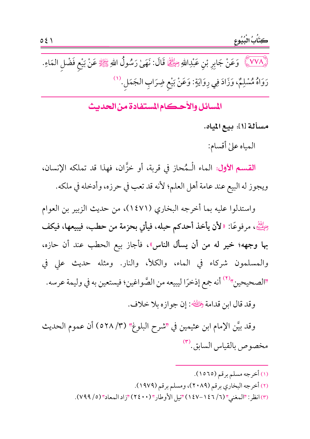 ٧٧٨ - وَعَنْ جَابِرِ بْنِ عَبْدِاللهِ -رضي الله عنهما- قَالَ: نَهَى رَسُولُ اللهِ - صلى الله عليه وسلم - عَنْ بَيْعِ فَضْلِ المَاءِ. رَوَاهُ مُسْلِمٌ، وَزَادَ فِي رِوَايَةٍ: وَعَنْ بَيْعِ ضِرَابِ الجَمَلِ. (¬١)