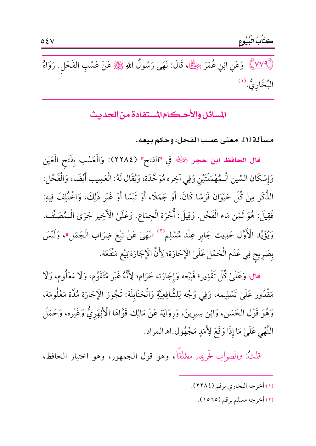 قلتُ: والصواب تحريمه مطلقًا، وهو قول الجمهور، وهو اختيار الحافظ،