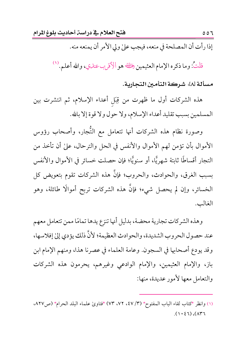 قلتُ: وما ذكره الإمام العثيمين -رحمه الله- هو الأقرب عندي، والله أعلم. (¬١)