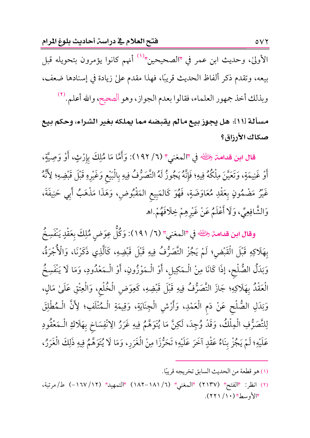 كتاب فتح العلام في دراسة أحاديث بلوغ المرام ط 4 (اسم الجزء: 5)