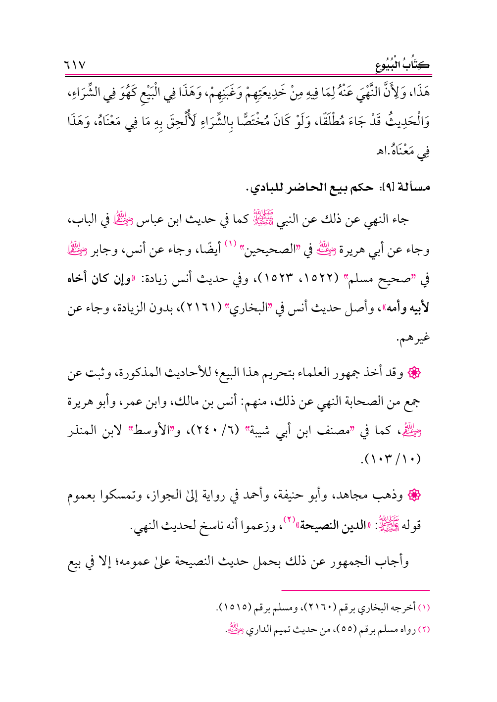 مسألة [٩]: حكم بيع الحاضر للبادي.