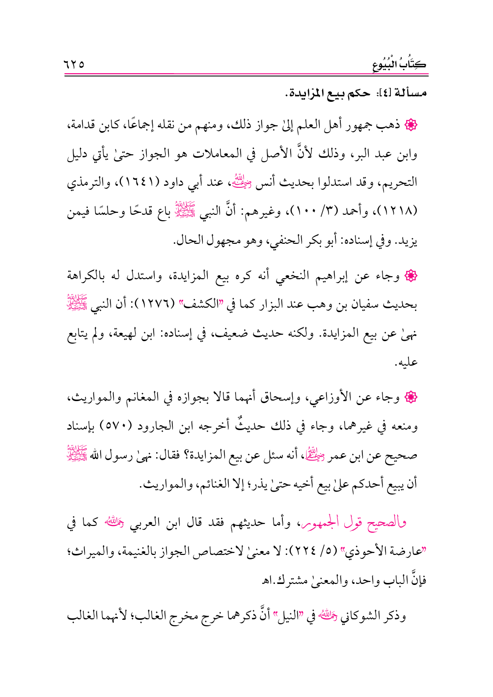 • وجاء عن الأوزاعي، وإسحاق أنهما قالا بجوازه في المغانم والمواريث، ومنعه في غيرهما، وجاء في ذلك حديثٌ أخرجه ابن الجارود (٥٧٠) بإسناد صحيح عن ابن عمر -رضي الله عنهما-، أنه سئل عن بيع المزايدة؟ فقال: نهى رسول الله -صلى الله عليه وعلى آله وسلم- أن يبيع أحدكم على بيع أخيه حتى يذر؛ إلا الغنائم، والمواريث.