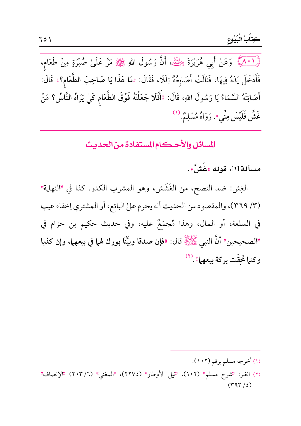 الغِش: ضد النصح، من الغَشَش، وهو المشرب الكدر. كذا في «النهاية» (٣/ ٣٦٩)، والمقصود من الحديث أنه يحرم على البائع، أو المشتري إخفاء عيب في السلعة، أو المال، وهذا مُجمَعٌ عليه، وفي حديث حكيم بن حزام في «الصحيحين» أنَّ النبي -صلى الله عليه وعلى آله وسلم- قال: «فإن صدقا وبيَّنَا بورك لهما في بيعهما، وإن كذبا وكتما مُحِقَت بركة بيعهما». (¬٢)