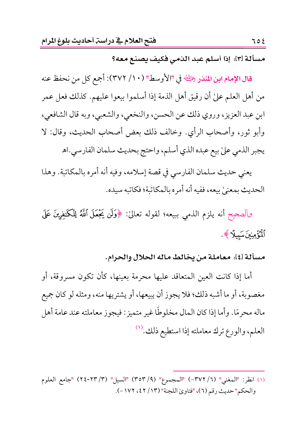 (¬١) انظر: «المغني» (٦/ ٣٧٢ - ) «المجموع» (٩/ ٣٥٣) «السيل» (٣/ ٢٣ - ٢٤) «جامع العلوم والحكم» حديث رقم (٦)، «فتاوى اللجنة» (١٣/ ٤٢، ١٧٢ - ).