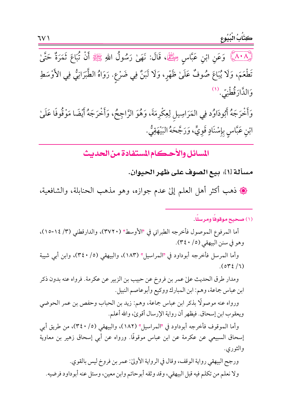 مسألة [١]: بيع الصوف على ظهر الحيوان.