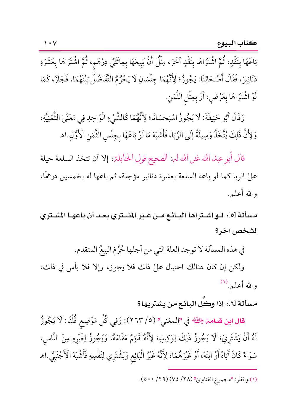 مسألة [٥]: لو اشتراها البائع من غير المشتري بعد أن باعها المشتري لشخص آخر؟