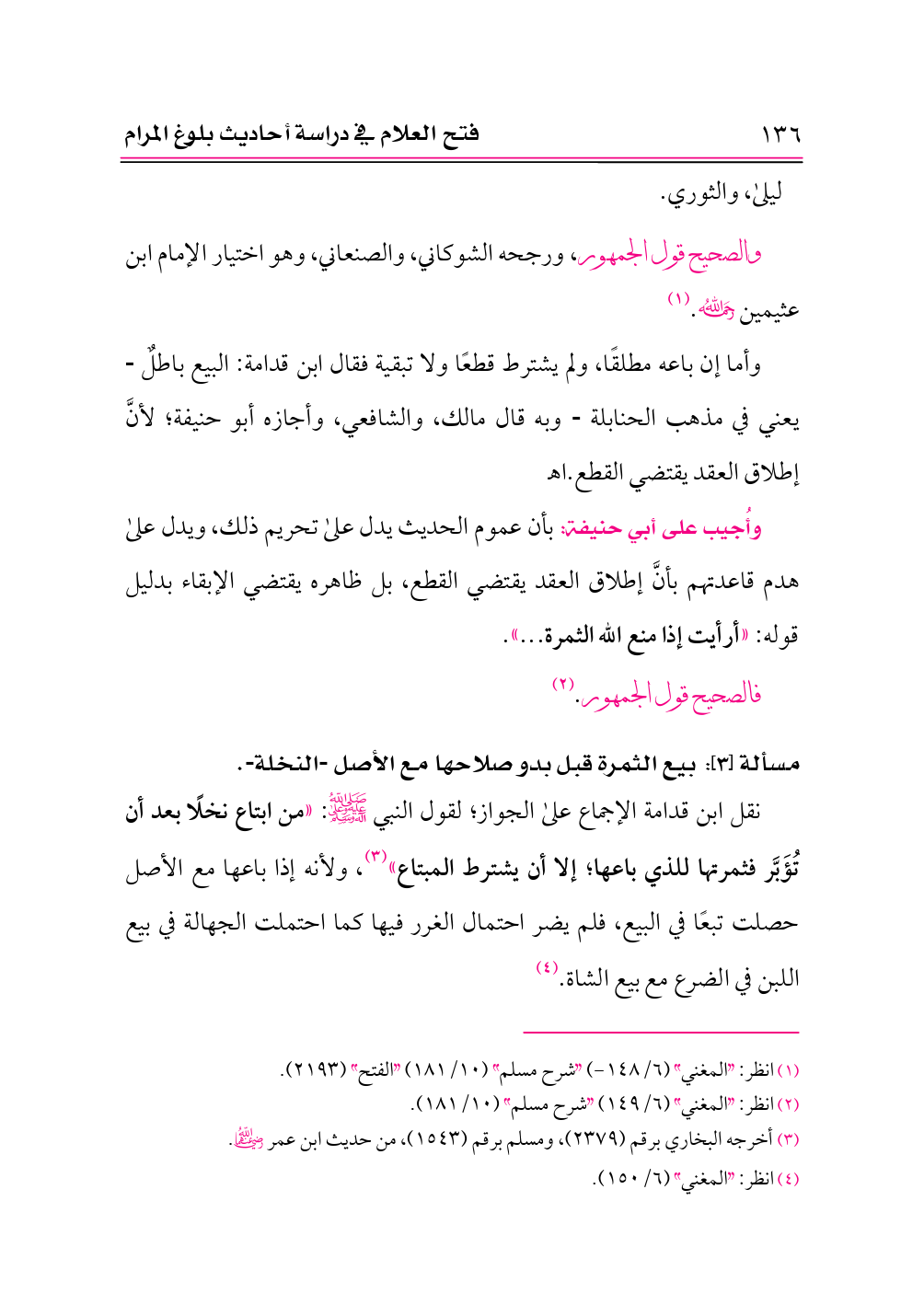 (¬١) انظر: «المغني» (٦/ ١٤٨ - ) «شرح مسلم» (١٠/ ١٨١) «الفتح» (٢١٩٣).