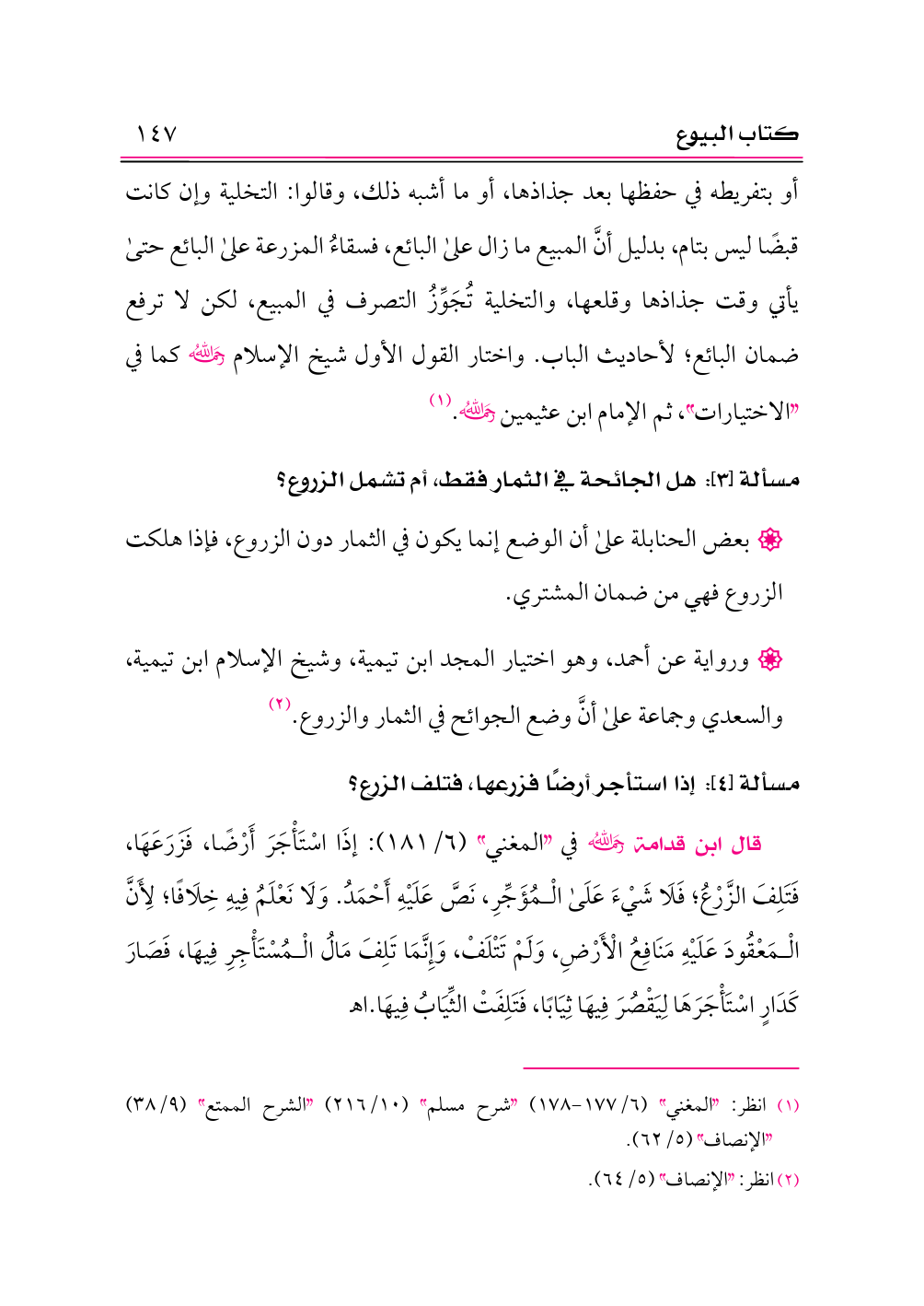 • ورواية عن أحمد، وهو اختيار المجد ابن تيمية، وشيخ الإسلام ابن تيمية، والسعدي وجماعة على أنَّ وضع الجوائح في الثمار والزروع. (¬٢)