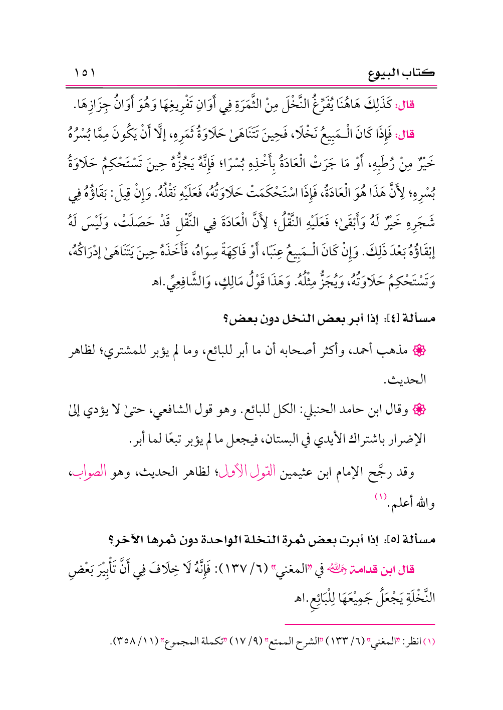 مسألة [٥]: إذا أبرت بعض ثمرة النخلة الواحدة دون ثمرها الآخر؟