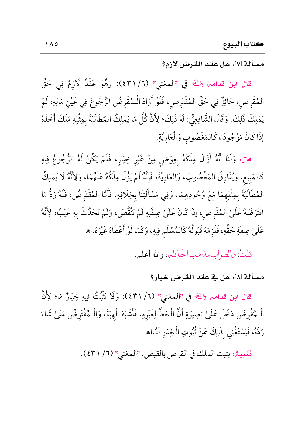 تنبيه: يثبت الملك في القرض بالقبض. «المغني» (٦/ ٤٣١).
