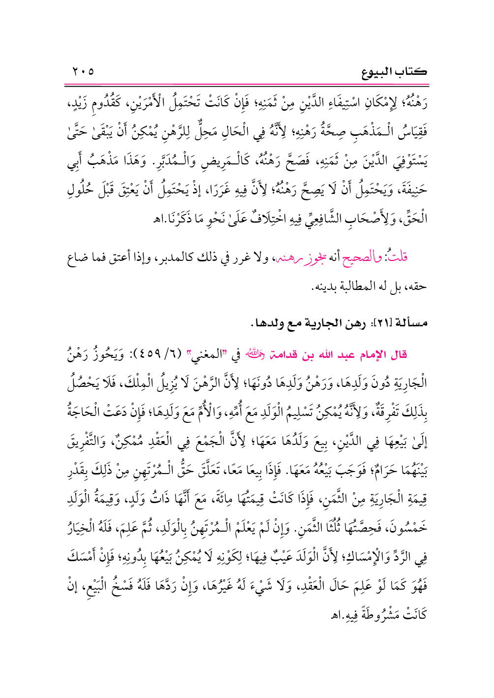 مسألة [٢١]: رهن الجارية مع ولدها.